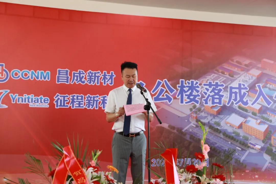 2021年7月20日,昌成新材廠(chǎng)區(qū)外彩旗飄揚(yáng)、彩虹門(mén)佇立,新落成的辦公樓前,16個(gè)氫氣球帶著紅色的祝賀彩帶迎風(fēng)飛舞,東門(mén)兩側(cè)張貼著鮮紅的對(duì)聯(lián):?jiǎn)⒄鞒汤现星嗪狭潣孙L(fēng)浪,誓昌成你我他同心揮毫繪江山,橫批:吉星高照,一樓員工食堂大廳人聲鼎沸、紅毯鋪地、綠植盎然,歡快的音樂(lè)縈繞四壁。昌成新材和征程新科辦公樓落成入住典禮將在這里隆重舉行。