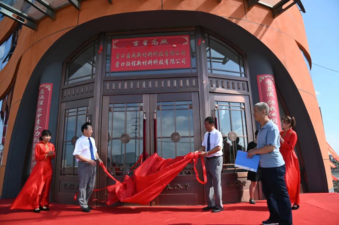 8時(shí)38分,鞭炮齊鳴,掌聲陣陣,昌成新材董事長(zhǎng)李成金先生、征程新科董事長(zhǎng)王瑞民先生共同為辦公樓揭幕。
